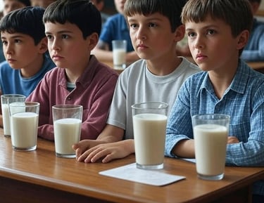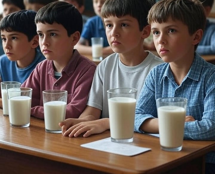 Bij ons geen halflege bekers. Kinderen leren dat koemelk geen optie is maar een plicht. We trainen ze om het leven recht in de ogen te kijken — zonder weg te kijken als de meester terugkijkt. Soja is hier een straf, geen keuze.